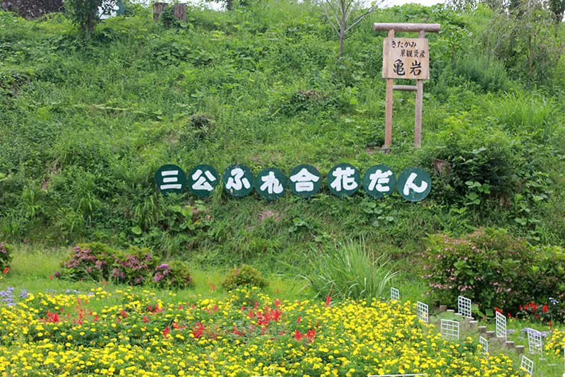 3区には「亀岩かめいわ」があります。亀の甲羅と頭のカタチをした自然石で口内の長寿のシンボルとなっています。また、周囲には町民によって整備された花壇もありとてもキレイです。 麓山はやま神社は西暦807年に坂上田村麻呂によって建立されました。麓山津見命はやまつみのみことが祀られています。