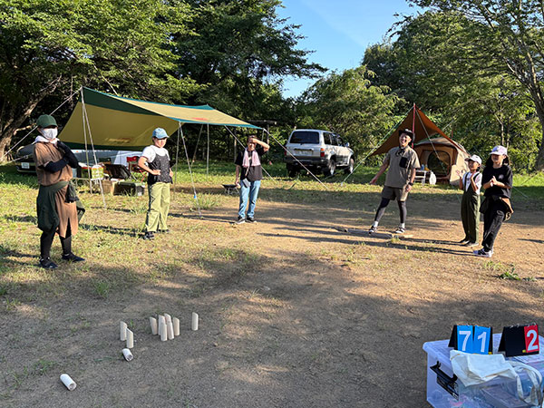 終始天気に恵まれ、途中参加者の交流も兼ねてモルック大会を開催。
