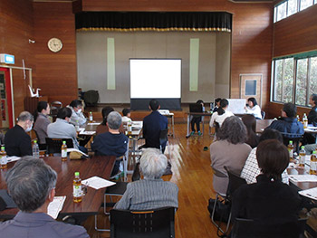 冒頭、1面で紹介した旧小学校の設計方針説明会の報告の後、来月の総会に向け、今年度の事業報告、決算見込、来年度の事業方針などの報告、提案について確認、意見をいただきました。